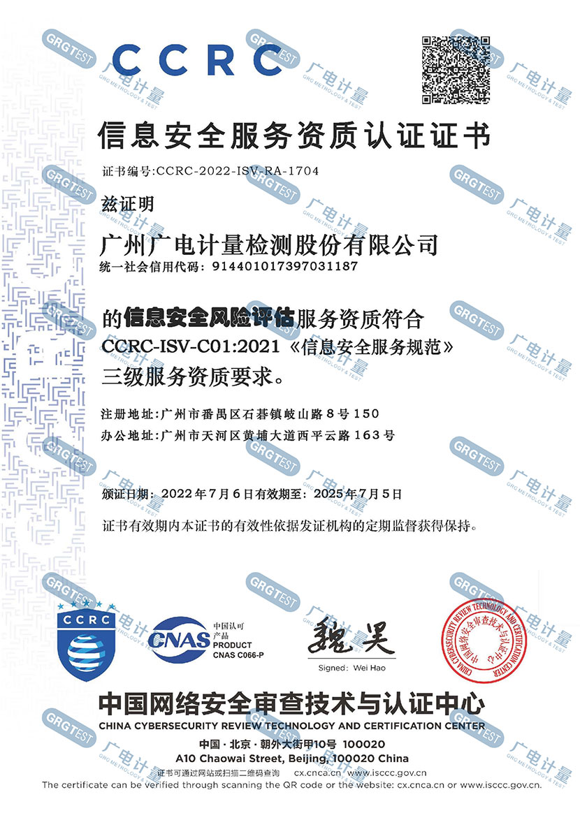 (1)廣電計(jì)量獲得中國(guó)網(wǎng)絡(luò)安全審查技術(shù)與認(rèn)證中心(CCRC)頒發(fā)的信息安全服務(wù)資質(zhì)認(rèn)證證書(shū);