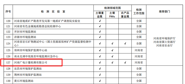 廣電計量全項目入選國家三部委《全國土壤污染狀況詳查首批檢測實驗室名錄》