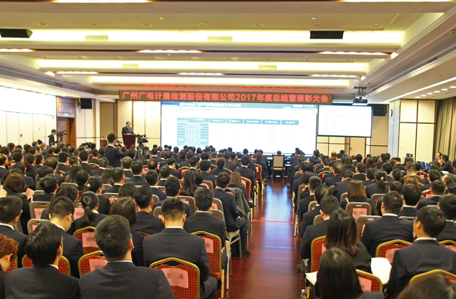 凝心聚力創(chuàng)佳績(jī),砥礪奮進(jìn)繪新篇。1月26日,廣電計(jì)量2017年度總結(jié)暨表彰大會(huì)成功召開,廣州無線電集團(tuán)公司領(lǐng)導(dǎo)及各部門領(lǐng)導(dǎo)、廣電計(jì)量經(jīng)營(yíng)管理團(tuán)隊(duì)、各子公司、各中心(部門)骨干員工代表齊聚廣州,共襄年度盛會(huì)。會(huì)議回顧年度大事,系統(tǒng)總結(jié)2017年取得的經(jīng)營(yíng)管理成果,表彰先進(jìn)團(tuán)隊(duì)及個(gè)人,并針對(duì)2018年工作進(jìn)行部署。廣州無線電集團(tuán)副董事長(zhǎng)、總裁、黨委副書記、廣電計(jì)量董事長(zhǎng)黃躍珍發(fā)表重要講話,廣電計(jì)量總經(jīng)理、黨委副書記黃敦鵬代表公司作2017年度經(jīng)營(yíng)工作總結(jié)報(bào)告,會(huì)議由廣電計(jì)量副總經(jīng)理曾昕主持。此外,大會(huì)特邀十余位計(jì)量檢測(cè)領(lǐng)域?qū)<矣H臨現(xiàn)場(chǎng),共享豐收喜悅。