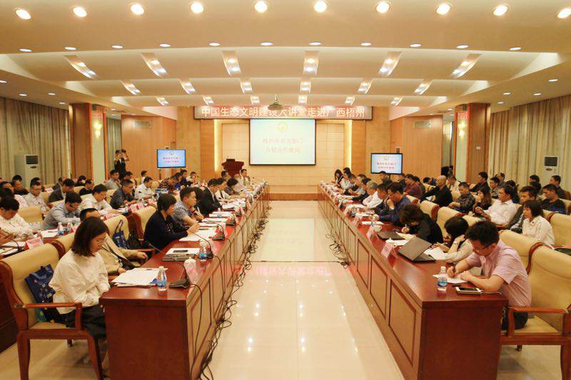在大講堂走進廣西活動中,柳州市委常委、副市長郝興國,來賓市政府副秘書長張桂延,梧州市委常委、組織部部長張惠強,賀州市人民政府副秘書長陳灝等領導出席并致辭,對大講堂活動表示了歡迎,希望通過大講堂送來先進的技術、優(yōu)質的資本和寶貴的合作機會,為加快當?shù)厣鷳B(tài)文明建設增添新動能。大講堂邀請了原國務院三峽辦副主任、環(huán)境保護部黨組成員胡保林,中國生態(tài)文明研究與促進會執(zhí)行副會長李慶瑞,國務院發(fā)展研究中心資源與環(huán)境政策研究所副所長常紀文,中國城市環(huán)境衛(wèi)生協(xié)會工業(yè)固廢與危廢處理專業(yè)委員會主任凌錦明,中國社科院城市發(fā)展與環(huán)境研究所環(huán)境經(jīng)濟與政策研究室主任李萌,廣西壯族自治區(qū)環(huán)保廳廳長助理孔源等環(huán)保領域權威專家,為與會人員解讀生態(tài)文明建設領域相關政策、傳播嶄新理念,并提供具體技術指導。