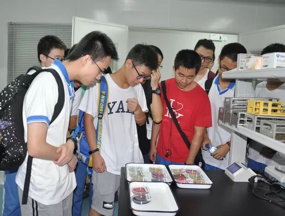 五顏六色的微生物培養(yǎng)皿吸引學(xué)生們駐足觀察