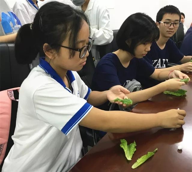參觀完實驗室,學(xué)生們在技術(shù)人員的指引下,學(xué)習(xí)填寫食品安全抽樣檢驗單,并體驗了一把蔬菜農(nóng)藥殘留的快檢過程。
