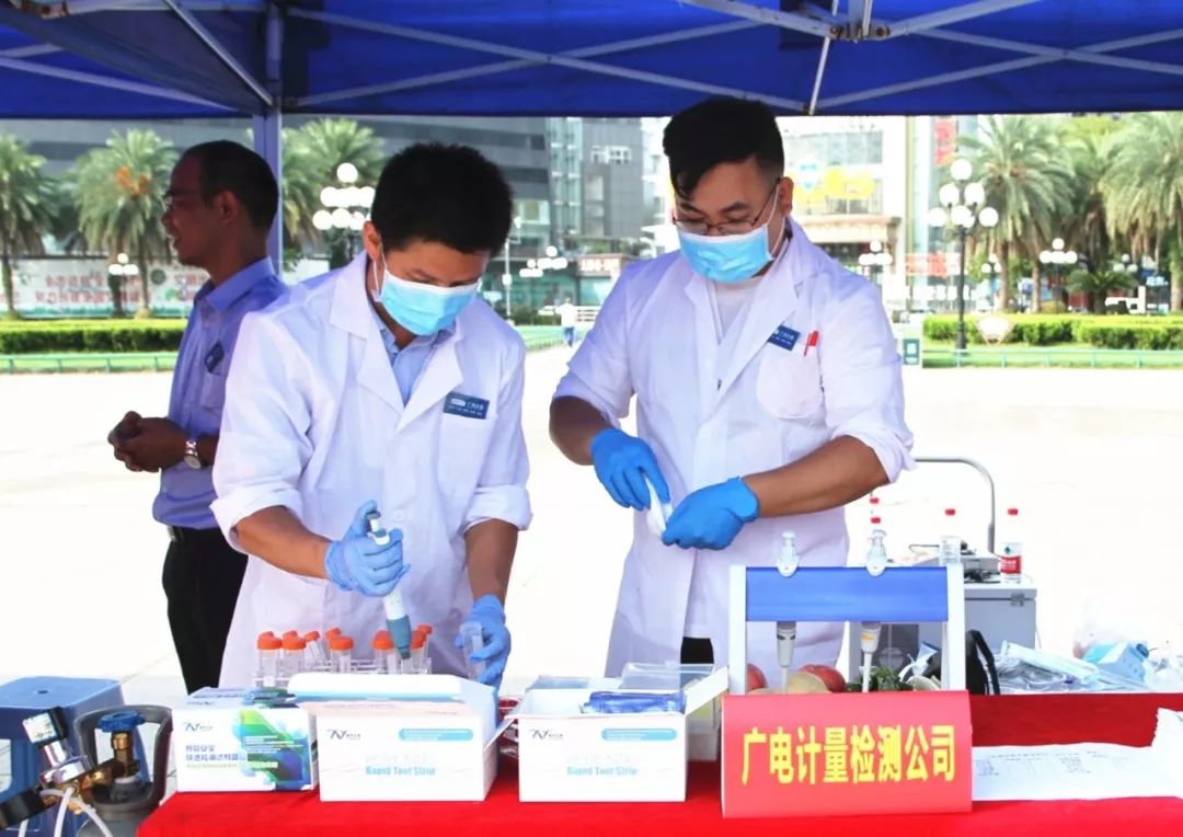 “食品安全快檢可以對食品的質(zhì)量進(jìn)行初步判斷,一般幾十分鐘甚至幾分鐘內(nèi)就可以得到檢測結(jié)果,通過食品快檢能及時(shí)發(fā)現(xiàn)食品安全問題隱患,有效防范食品安全突發(fā)事件……”在活動(dòng)現(xiàn)場,廣電計(jì)量南寧子公司的技術(shù)人員向市民積極宣傳快檢的作用和意義。不少市民還自帶蔬菜、水果、肉類等食品送到快檢點(diǎn)進(jìn)行檢測,廣電計(jì)量技術(shù)人員以專業(yè)的操作和耐心的解答,得到現(xiàn)場市民的肯定和贊賞。