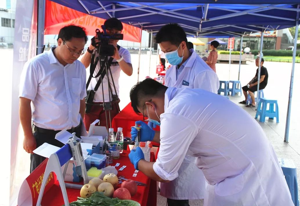 7月20日, “2018年全國食品安全宣傳周暨桂林創(chuàng)食安城大宣傳活動(dòng)儀式”在桂林市中心廣場舉行。桂林市副市長、市食安委副主任蘭燕,市人大常委會(huì)副主任石春蓮,市政協(xié)副主席鄭毅等領(lǐng)導(dǎo)出席活動(dòng)。廣電計(jì)量現(xiàn)場免費(fèi)提供蔬菜、水果、肉類等食品農(nóng)產(chǎn)品的農(nóng)殘、獸殘快檢服務(wù),科普食品原料安全選購常識(shí),吸引眾多市民及媒體記者駐足交流。