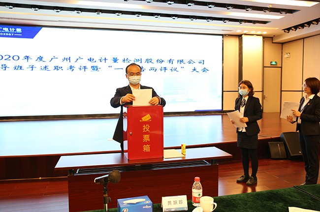 1月28日,廣電計(jì)量2020年度領(lǐng)導(dǎo)班子述職考評(píng)暨“一報(bào)告兩評(píng)議”大會(huì)召開(kāi),廣電計(jì)量黨委書(shū)記、總經(jīng)理黃敦鵬等領(lǐng)導(dǎo)班子圍繞2020年工作總結(jié)及2021年工作計(jì)劃展開(kāi)述職,廣電計(jì)量黨委副書(shū)記白云代表公司黨委報(bào)告2020年度選人用人工作情況。