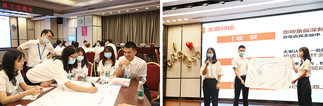 儀式結(jié)束后,公司安排多位應(yīng)屆生身份入職,實(shí)踐經(jīng)驗(yàn)豐富的“老”員工與各位“新生力”進(jìn)行面對(duì)面交流。“老”員工們分享自己在公司成長(zhǎng)中的點(diǎn)點(diǎn)滴滴,傳授自己的工作經(jīng)驗(yàn),幫助“新生力”答疑解惑。“新生力”們也紛紛向前輩取經(jīng)學(xué)習(xí),積極提問(wèn),一同討論。