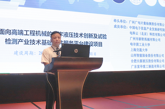 2020年,廣電計量牽頭中國電子信息產(chǎn)業(yè)發(fā)展研究院、新歐機械、哈爾濱工業(yè)大學(xué)、上海交通大學(xué)等單位,承擔(dān)了國家工信部“面向高端工程機械的數(shù)字液壓技術(shù)創(chuàng)新及試驗檢測產(chǎn)業(yè)技術(shù)基礎(chǔ)公共服務(wù)平臺”建設(shè)項目,開展高端工程機械數(shù)字液壓試驗檢測技術(shù)研究與創(chuàng)新,搭建檢驗檢測公共服務(wù)平臺。會上,趙可淪圍繞平臺建設(shè)方案、項目進展、后續(xù)規(guī)劃以及知識產(chǎn)權(quán)分析報告成果展示作主題報告。