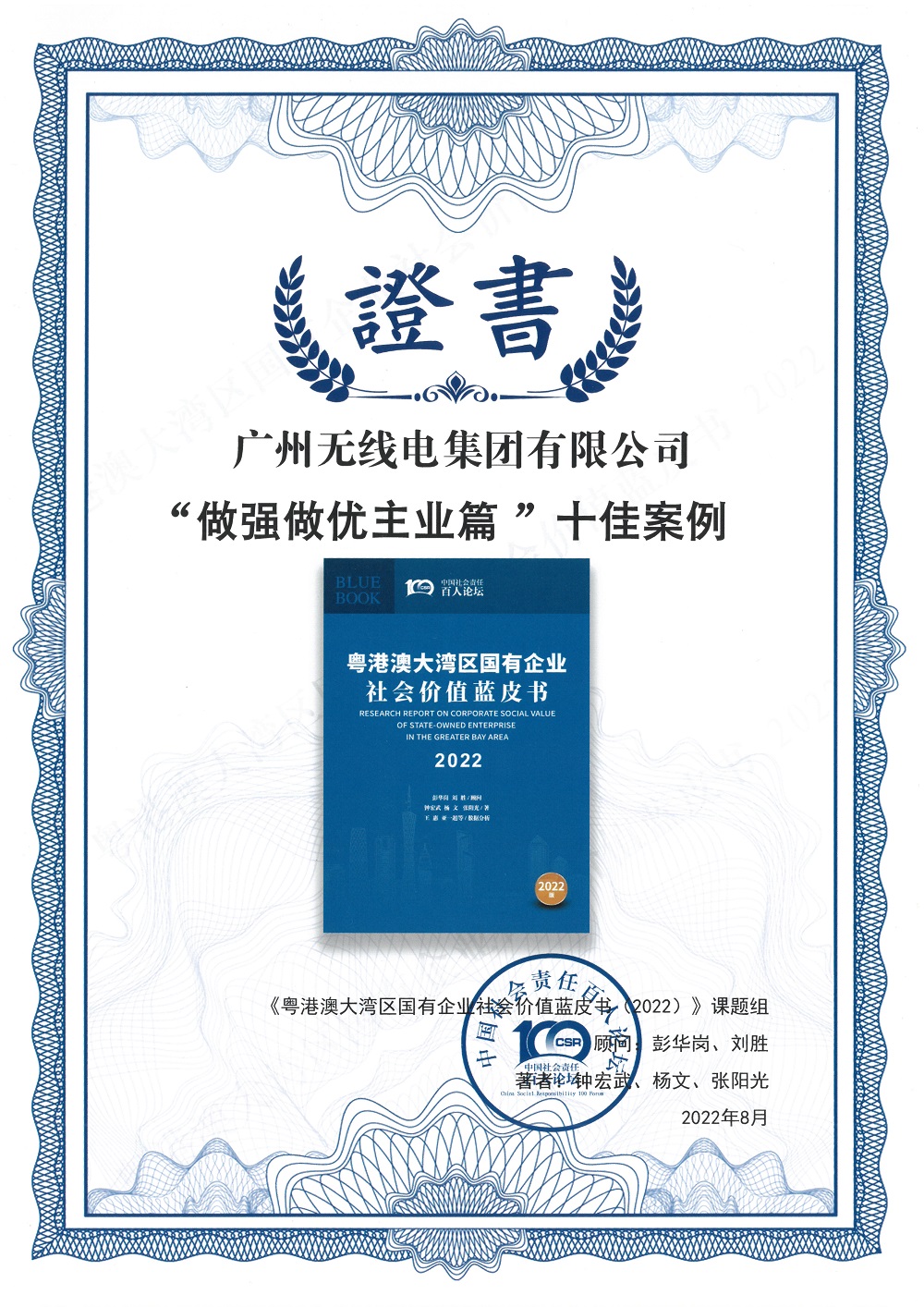 廣州無線電集團入選粵港澳大灣區國有企業社會價值藍皮書十佳經典案例