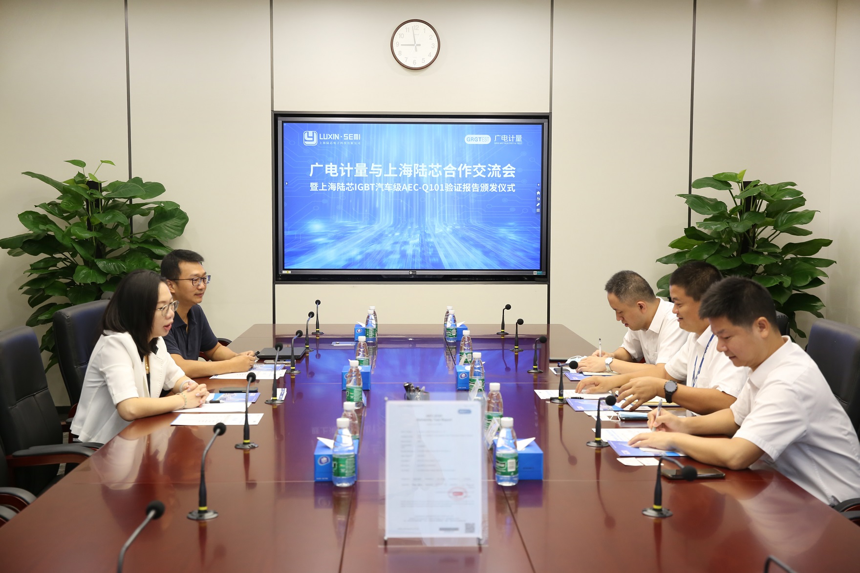 9月20日,廣州廣電計量檢測股份有限公司(簡稱:廣電計量)攜手上海陸芯電子科技有限公司(簡稱:上海陸芯),成功舉辦“廣電計量與上海陸芯合作交流會暨上海陸芯IGBT汽車級AEC-Q101驗證報告頒發儀式”。上海陸芯副總經理黃冬榆、市場總監曾祥幼,廣電計量總經理助理陸裕東、半導體技術副總監李汝冠、失效分析業務副總監代蕾等雙方代表人員出席了本次活動,隨后一同參觀了廣州無線電集團企業展廳和廣電計量實驗室。