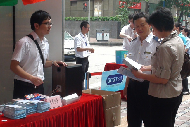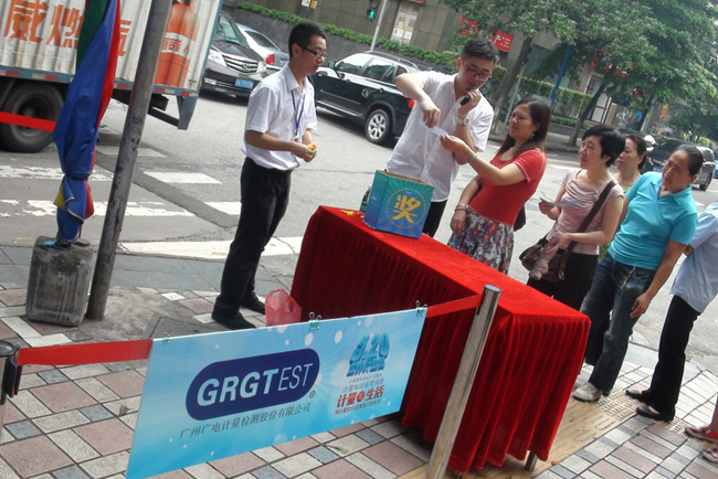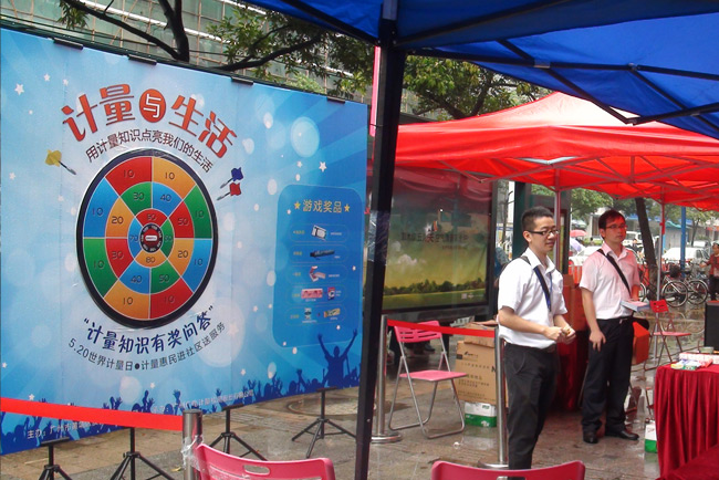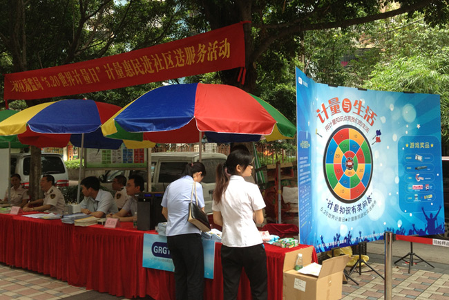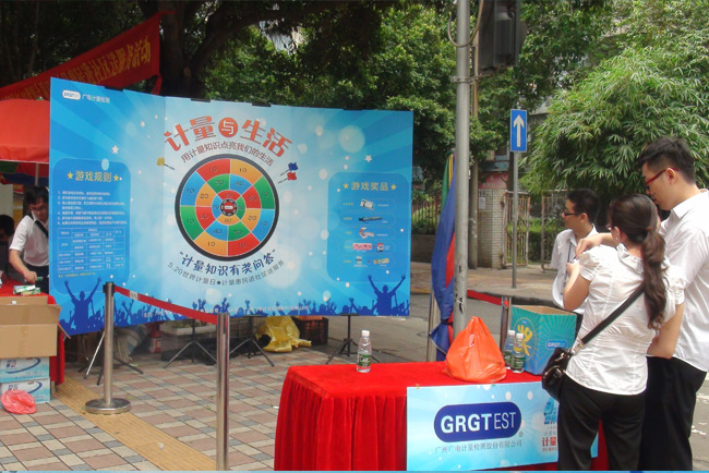 5月17日和20日,GRGT分別與廣州市黃埔區(qū)質(zhì)量技術(shù)監(jiān)督局和廣州市天河區(qū)質(zhì)量技術(shù)監(jiān)督局,聯(lián)合相關(guān)單位共同舉辦了主題為“計量與生活——5.20世界計量日計量惠民進(jìn)社區(qū)送服務(wù)”的計量日宣傳活動。在兩地質(zhì)監(jiān)局的精心組織和大力支持下,GRGT策劃、組織、承辦了計量知識有獎知識問答宣傳活動,將計量知識融入趣味性飛鏢計分有獎問答游戲,向廣大市民科普民生計量知識。