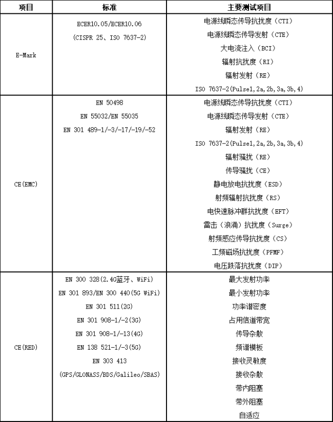 汽車無線產(chǎn)品面臨的管控主要涉及E-Mark、CE EMC和CE RED認(rèn)證。
