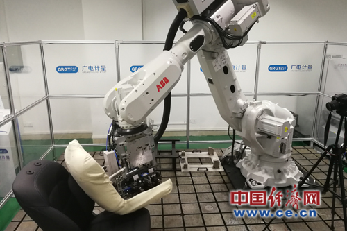 機器人正在進行座椅測試實驗。經(jīng)濟日報-中國經(jīng)濟網(wǎng)記者 佟明彪/攝