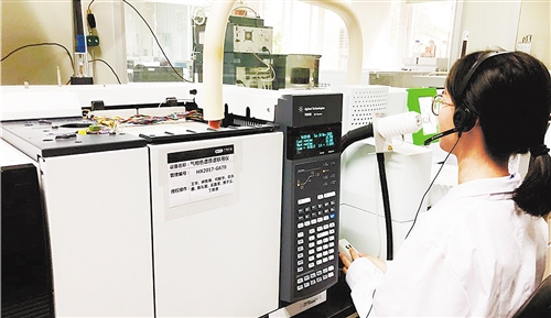 在廣電計量化學分析實驗室,氣味評價師正利用氣相色譜質譜聯用儀和嗅辨儀對氣味進行分離和嗅辨。 郭靜原攝