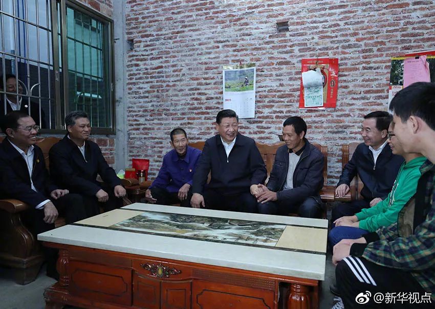 10月23日下午,習(xí)近平一行沿著崎嶇的山路乘車來到廣東省英德市連江口鎮(zhèn)連樟村,走進(jìn)村公共服務(wù)站、扶貧玩具加工廠車間和貧困戶家中,同村民們親切交談。習(xí)近平說:“黨支部帶領(lǐng)大家一任接著一任,我們的父老鄉(xiāng)親們也是一代接著一代,推動(dòng)我們的社會(huì)主義建設(shè)。我們?cè)诿撠氁院筮€要致富,還要走一個(gè)現(xiàn)代化的道路。我們現(xiàn)在正在這樣的一個(gè)路程上。”