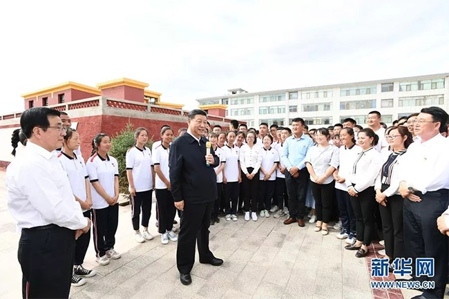 2019年8月20日下午,中共中央總書(shū)記、國(guó)家主席、中央軍委主席習(xí)近平考察甘肅省張掖市山丹培黎學(xué)校。