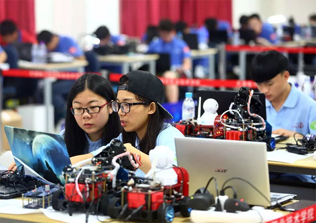 2016全國(guó)職業(yè)院校技能大賽在天津開(kāi)賽。這是 2016年5月8日,選手參加高職組嵌入式技術(shù)與應(yīng)用開(kāi)發(fā)比賽。