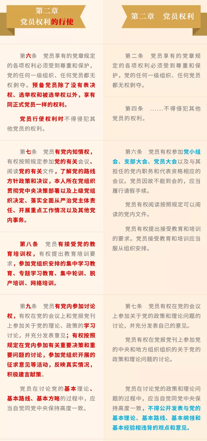 近日,中共中央印發(fā)了修訂后的《中國共產(chǎn)黨黨員權(quán)利保障條例》,并發(fā)出通知,要求各地區(qū)各部門認真遵照執(zhí)行。新修訂《條例》“新”在哪里?主要內(nèi)容是什么?黨員可以行使哪些權(quán)利?怎樣保障黨員權(quán)利行使?7個問題和1個視頻,帶你了解新修訂的黨員權(quán)利保障條例,文末還為大家附上了《條例》全文及修訂前后對照表,建議收藏!