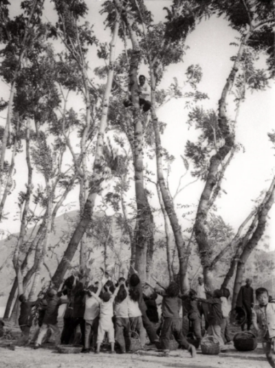 圖為群眾采摘樹葉的情景(晉察冀攝影師沙飛拍攝)